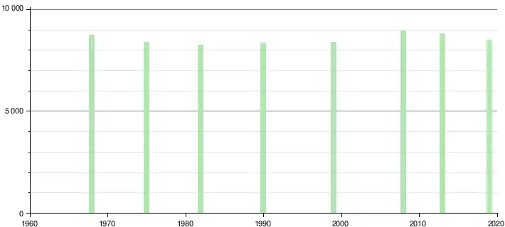 Le tableau et le graphique ci-dessous correspondent au périmètre actuel de la communauté de communes de Domme-Villefranche du Périgord, qui n'a été créée qu'en 2014.