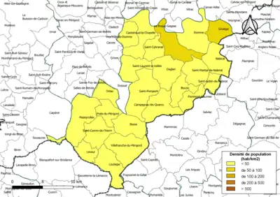 | Campagnac-lès-Quercy | 24075 | Campagnacois | 19,67 | 324 (2021) | 16 |