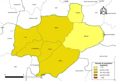 | Saffré | 44149 | Saffréens | 57,46 | 4 036 (2021) | 70 |