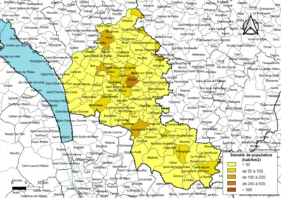 C'est un territoire faiblement peuplé, puisque la densité de population y est 2,5 fois inférieure à celle de la moyenne départementale.