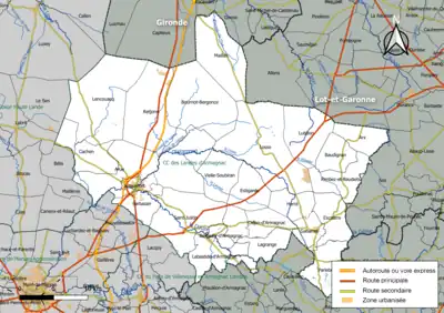 | Gabarret | 40102 | Gabardans | 16,9 | 1 279 (2021) | 76 |