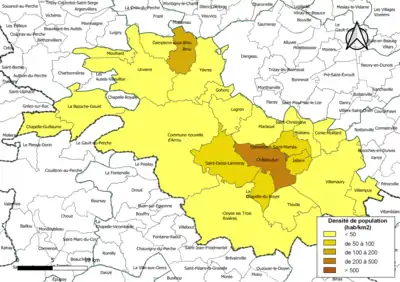 | La Bazoche-Gouet | 28027 | Bazochiens | 37,44 | 1 215 (2021) | 32 |