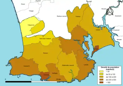 | Guilvinec | 29072 | Guilvinistes | 2,46 | 2 682 (2021) | 1 090 |