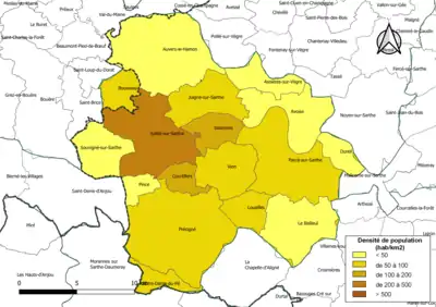 | Auvers-le-Hamon | 72016 | 47,83 | 1 471 (2021) | 31 | |