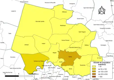 | Pontonx-sur-l'Adour | 40230 | Pontois | 49,42 | 2 932 (2021) | 59 |
