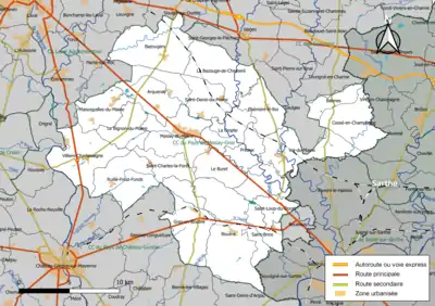 Situation de la communauté de communes dans la Mayenne. | |
