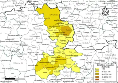 | Puiseaux | 45258 | Puiseautins | 20,32 | 3 374 (2021) | 166 |