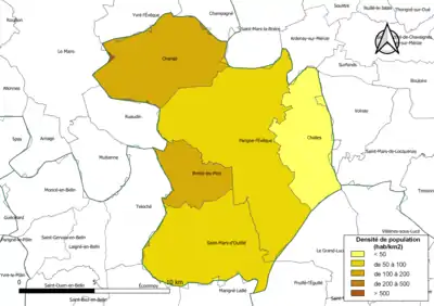 | Brette-les-Pins | 72047 | Brettois | 14,51 | 2 123 (2021) | 146 |