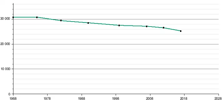 Sa densité de population est, selon les données du recensement général de la population d'environ 148 hab/km2, bien moindre que celle du département, qui s'établissait à 454 hab/km2 en 2015[6]. Sa population est en décroissance constante depuis 1968.