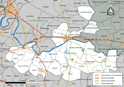 Localisation en Gironde et en Dordogne (La commune dordognaise est en marron.) | |