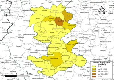- Les densités de populations sont calculées automatiquement dans un SIG en utilisant la superficie géographique de la commune et non la superficie cadastrale définie par l'Insee. Des différences de classe peuvent ainsi éventuellement apparaître pour les communes qui se situent en limite de franchissement de seuil de classe.