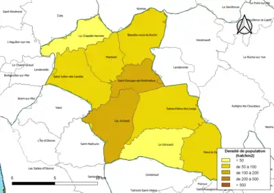 | Sainte-Flaive-des-Loups | 85211 | Flavois | 36,11 | 2 522 (2021) | 70 |
