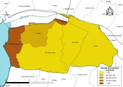 | Saint-Père-en-Retz | 44187 | Péréziens | 62,72 | 4 620 (2021) | 74 |