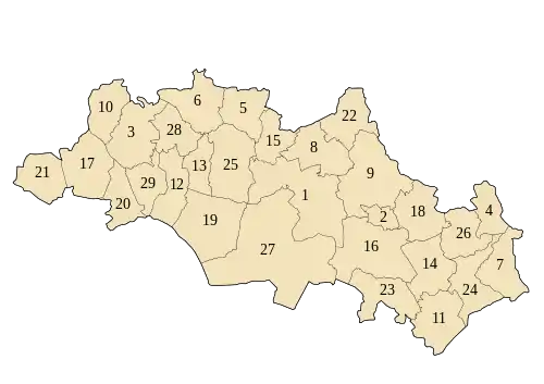 La wilaya d'Oum El Bouaghi dans les Aurès (Algérie) possède 29 communes