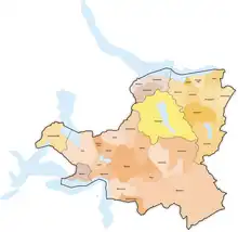 Carte du canton de Schwytz présentant sa division en districts et communes en 2011.