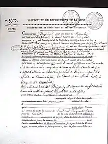 | lettre du préfet de la Loire (vraisemblablement pour trouver un accord avec Hochet, Bricogne, Milleret, Boigues)6. | |||