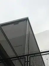 - Les fenêtres de la mezzanine ont été rendues aveugles par des panneaux placés derrière les fenêtres par l'intérieur.