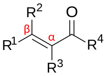 Les composés carbonylés α,β-insaturés sont des composés assez utilisés en synthèse organique car les carbones 1 et 3 sont sites électrophiles. Dans cette nomenclature, 1 désigne l'atome de carbone portant l'atome d'oxygène de la fonction cétone et 3 l'atome de carbone en β de la fonction carbonyle.