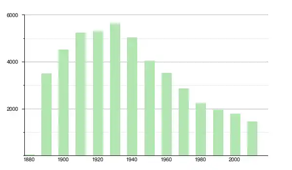 | 1960 | 3 531 | ▼ −12,73 % | |