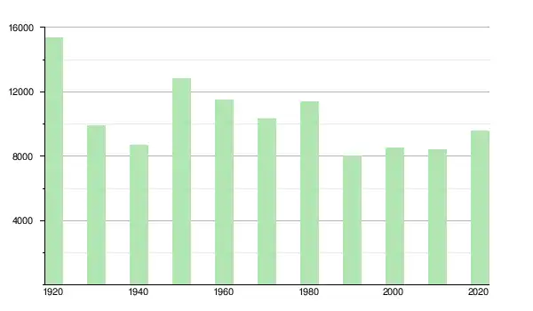 | 1960 | 11 509 | ▼ −10,12 % | |