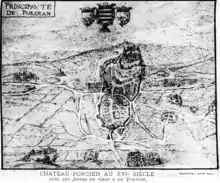 Cette maison de Croÿ obtient que le comté soit transformé en principauté qui passe à la maison d'Arenberg. En 1608, le Porcien est vendu à Charles Ier de Mantoue, duc de Nevers et de Rethel et passe en 1608 dans la Maison de Gonzague[4], en 1659 au cardinal Mazarin, en 1661 dans la famille de La Porte de La Meilleraye, en 1738 dans la Maison de Durfort puis en 1781 dans la Maison d'Aumont de Rochebaron. En 1826, la 11e princesse Louise-Félicité d'Aumont de Rochebaron meurt. Elle s'était mariée en 1777 à Charles Anne de Grimaldi, duc de Valentinois, futur prince Honoré IV de Monaco, lui apportant à sa mort ses titres, dont celui de princesse de Porcien, transmis ainsi à la lignée princière de Monaco[5]. Le titre, devenu bien sûr honorifique, est, depuis, porté par les Grimaldi[5].