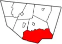 | Eagles Mere (borough) | Nommé d'après le Eagles Mere Lake situé dans son centre (et lui-même nommé d'après la Pygargue à tête blanche (Bald Eagle en anglais) et mere, un terme anglais désignant un lac large et peu profond). | 1877[6] | 1899 | Shrewsbury Township[6] | 2,2 | 5,8 | 153 | ![]() |