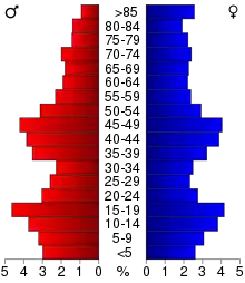 L'âge moyen de la population est de 40 ans. Pour 100 femmes il y 95,5 hommes. Pour 100 femmes de 18 ou plus, il y a 92,90 hommes.