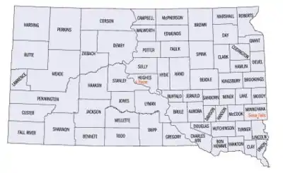 L’État américain du Dakota du Sud est divisé en 66 comtés (counties).