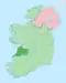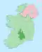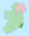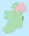 A map of Ireland showing traditional county borders and names with Northern Ireland counties colored tan, all other counties colored green
