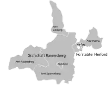 - (de) Cet article est partiellement ou en totalité issu de l’article de Wikipédia en allemand intitulé « Grafschaft Ravensberg » (voir la liste des auteurs).