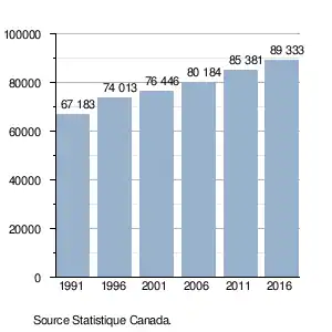 Au recensement du Canada de 2016, la population totale s'élève à 89 333 habitants, soit une hausse de 3 852 personnes (