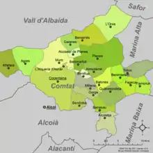 El Comtat est une comarque de la province d'Alicante, dans la Communauté valencienne, en Espagne. Son chef-lieu est Cocentaina.