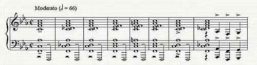 Les accords éclatent enfin sur un torrent de croches au piano sur lequel apparaît le thème principal, joué par les violons, altos et clarinettes.