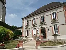 Les armes de la commune se blasonnent ainsi : tiercé en pairle : au premier d'or aux trois fleurs de lys de gueules, au deuxième d'azur à l'église d'argent couverte de gueules, au troisième de gueules à la gerbe de blé d'or liée d'argent. |