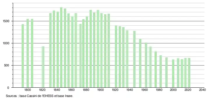 Paroisse très rurale, sans route ni pont, à la veille de la Révolution, elle vit sans grandes secousses cette période troublée et atteint en 1846 sa population maximale (1803 habitants).