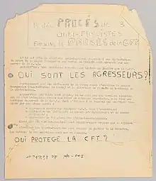 - le [7] a lieu une des distributions de tracts « pionnières » de Rennes-Révolutionnaire[7], des exclus du PCMLF, déclenchant une intervention musclée de la part de la maîtrise et de la CFT.