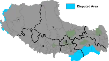 | 10 | Arunachal Pradesh (particulièrement Tawang) | Tibet | Inde | La base aérienne de Tawang et les pistes d'atterrissage avancées d'Aalo, Mechuka, Pasighat, Tuting, Vijoynagar, Walong et Ziro desservent ce secteur[82]. La plupart de l'Arunachal Pradesh contrôlé par l'Inde est également revendiqué par la Chine, en particulier Tawang. | ||