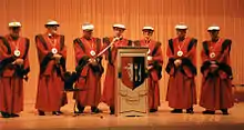 Le rituel d'adoubement au titre d’épicurien par le Grand Maître de cérémonie entouré du Grand Conseil est largement inspiré de celui de la Confrérie des Chevaliers du Tastevin.