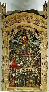 - Puy de 1525 : Pour notre foi militante comtesse, offert par Philippe de Conty. L'iconographie exalte les valeurs chevaleresques. Daté de 1526 au bas du prie-Dieu du donateur[14] (musée de Picardie) ;