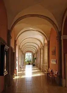 Vue du cloître de l'abbaye Saint-Martin-des-Glandières.