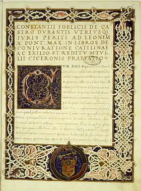 Léon X d'une édition du De Catilinae coniuratione de Salluste datant de la Renaissance conservé à la Bibliothèque du Vatican