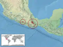 Cette espèce est endémique des États de Guerrero et Oaxaca dans le sud du Mexique. Elle se rencontre dans la Sierra Madre del Sur entre 1 730 et 3 200 m d'altitude[1].