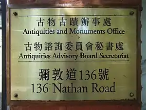 Siège du conseil consultatif des antiquités (ancienne école britannique de Kowloon (en)). | |