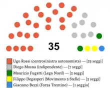 À la suite des élections provinciales de 2013, le Conseil régional est dominé par le Parti démocrate (9 élus), juste devant le Parti autonomiste trentin et tyrolien et ses 8 sièges.