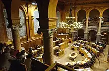 Jusqu'en , le vote se fait à main levée[16],[17] et ne donne lieu à aucune publication nominale. De 2014 à 2021, seule une partie du résultat des votes (votes sur l'ensemble, votes finaux, votes à majorité qualifiée ou sur demande de dix députés) est publiée nominativement. La transparence de l'ensemble des votes n'est votée qu'en [9].