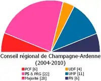 À la suite des élections régionales de 2004, le conseil était également composé de 49 membres, répartis entre les groupes suivants :