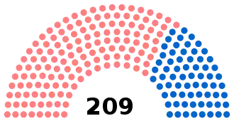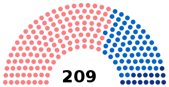 Au 3 octobre 2009, les 209 sièges étaient répartis comme suit entre les listes[3] :