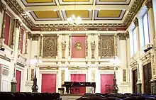 L'un des points forts de l'installation est l'utilisation innovante du grand Ehrbarsaal existant, avec ses élégantes colonnes dorées et son plafond orné en tant que salle d'audience pour la nouvelle salle de concert, augmentée par des équipements de performance de pointe.