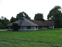 Le bâtiment est une ancienne étable, écurie et bergerie du XIXe siècle à laquelle a été adjointe par Madame Kelsen Plassard, dont l'époux est l'un des trois directeurs du grand magasin "le bon marché" de Paris, un bâtiment en forme de rotonde couvert d'ardoise en provenance de l'exposition universelle de 1900, du pays de Caux (servant d'aire de battage). C'est dans cet espace que se tenait la ferme modèle de ce grand magasin.