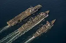 L’US Navy a également expérimenté l’utilisation de biocarburants en créant une flotte de combat les employants, la "Great Green Fleet"[20]. En 2016, un groupe aéronaval de quatre navires constitué autour du porte-avions USS John C. Stennis (CVN-74) , ce dernier étant a propulsion nucléaire, utilise pour la première fois un carburant à base de graisse de bœuf à 10 % du mix total[21].
